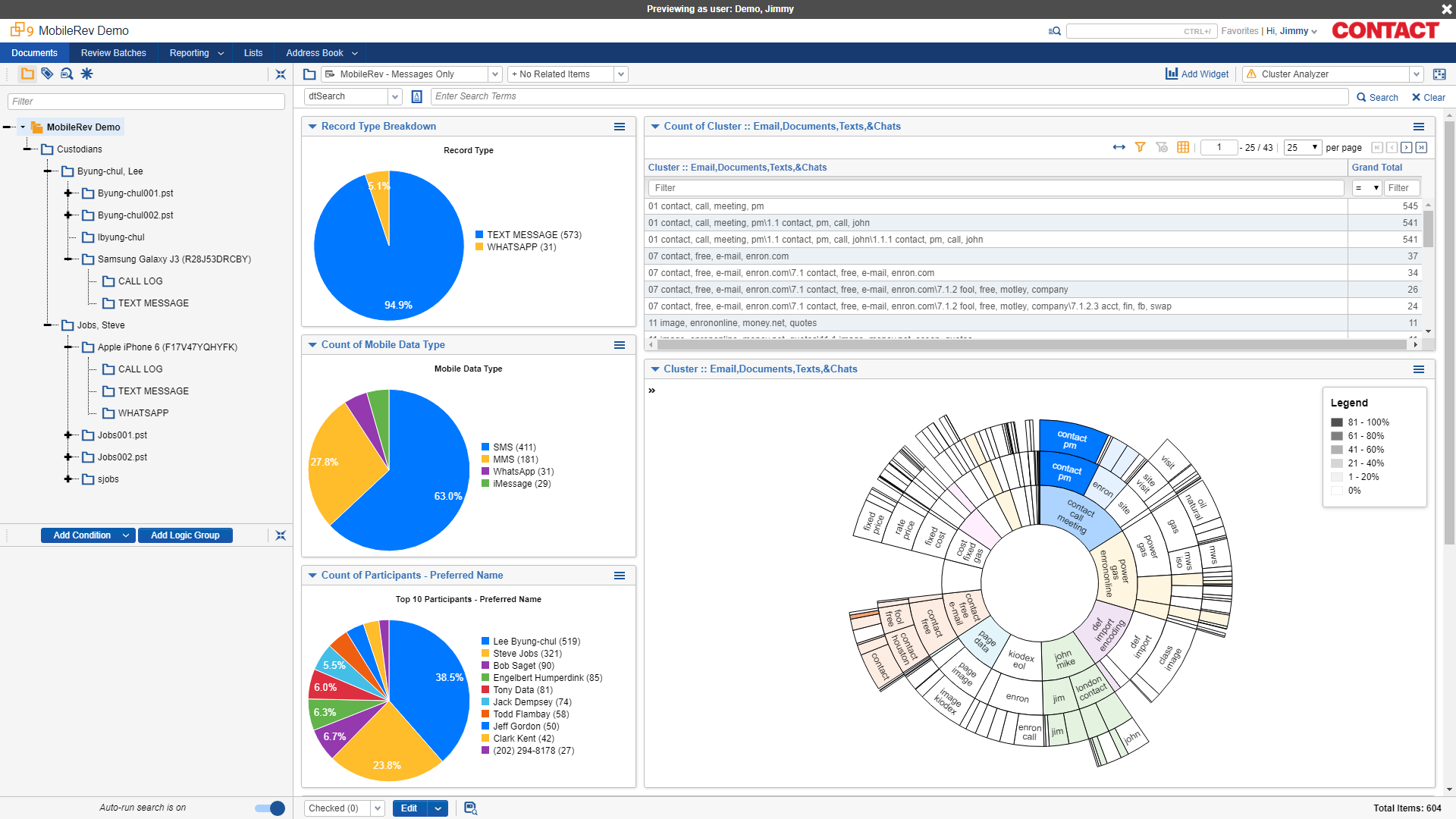 Contact Discovery Services also tackled the mobile review challenge. To streamline the mobile review process and help attorneys review, search, organize, and produce mobile device content in Relativity, they created MobileRev™. The solution makes the review experience of mobile content more comfortable for an attorney, just like reading email, and helps them organize data collected from mobile devices, so they can better identify meaningful content quickly.