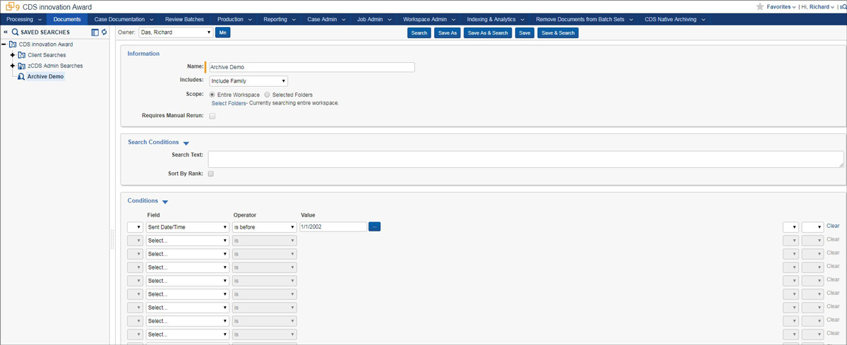CDS wanted a way to efficiently access culled data in case of changes in search terms, additional litigation, or the need to reuse data. They created CDS Data Store, making culled data easily accessible for clients, reducing the costs of reprocessing data, and increasing efficiency by allowing users to archive or restore data in “near-line” storage at the push of a button, in an easy and secure way.