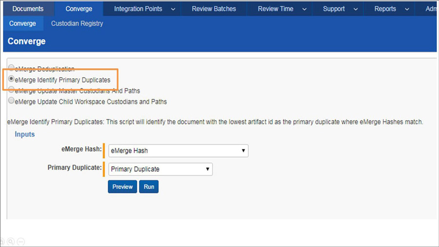 Custodians and data often overlap between multiple matters, causing increased costs and inconsistencies. Troutman Sanders eMerge created Converge to allow clients to process and store data in a single “master” workspace, while maintaining individual “child” workspaces for each matter. Converge reduces the cost of processing and hosting data more than once and allows clients to reuse decisions to save time in review. By generating a hash for each document, clients can rest assured that all custodian and source path data is stored for production.