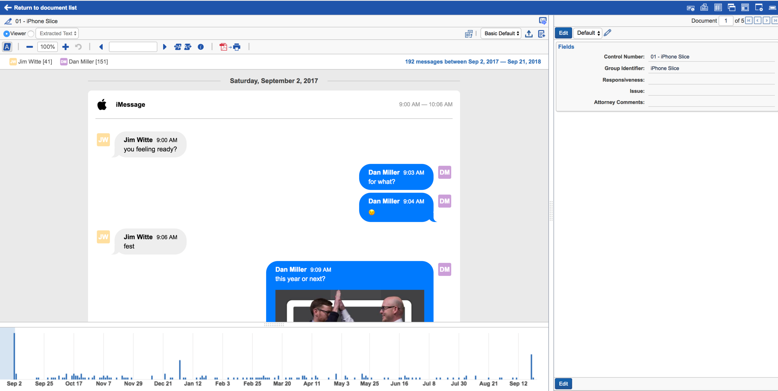 But up to this point, e-discovery software hasn’t been built to accommodate that. To address this, Relativity is releasing short message data capabilities. With a focus in enabling review and production, we are ensuring that this data can be loaded easily with a normalized schema to import to. We’re enabling you to review this data in its native form and we’re making it easy to understand long conversations as well as communication across multiple channels by “slicing” the data according to your preferences.